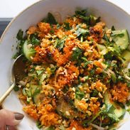 Whoa. This is a stellar, hearty salad that I’m now putting in my rotation. I made my bowl with brown rice and it didn’t “clump” as well I’m sure jasmine rice would have but it was still delicious and crispy. I had a fennel bulb which I sliced thin and roasted in gochujang butter and added it to the salad along with crispy baby lettuce. The dressing is absolutely bananas. Fish sauce in abundance can put me off so I made mine with just one Tbs. It was perfect for me. Thanks for a creative and delicious salad!