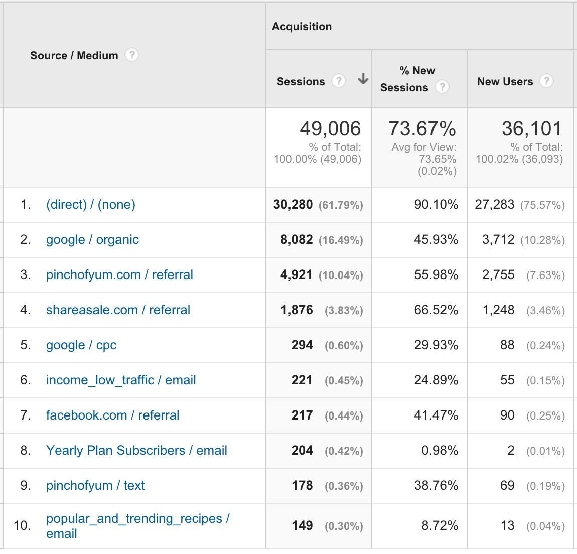 Top Ten Traffic Sources